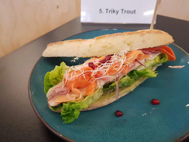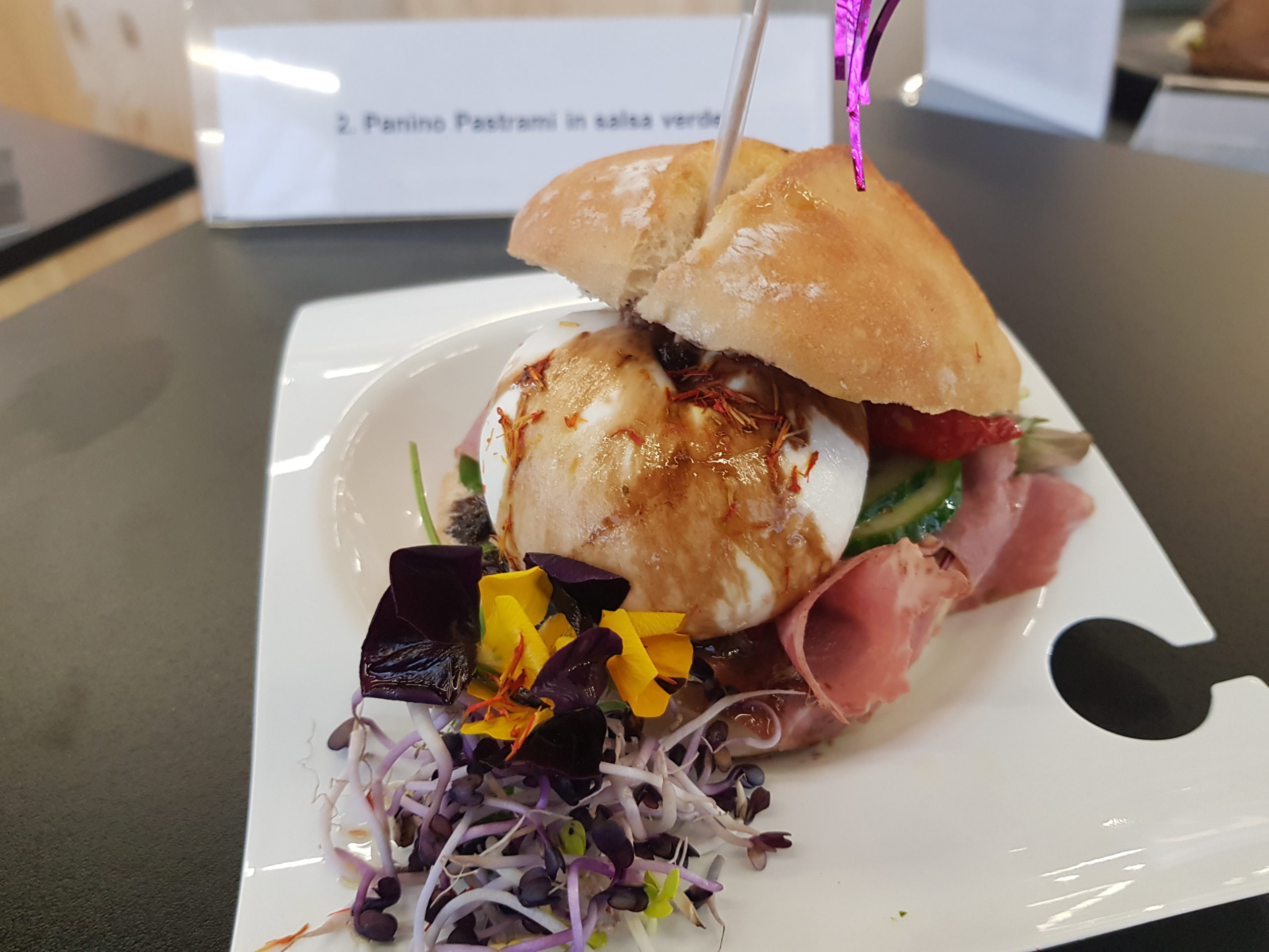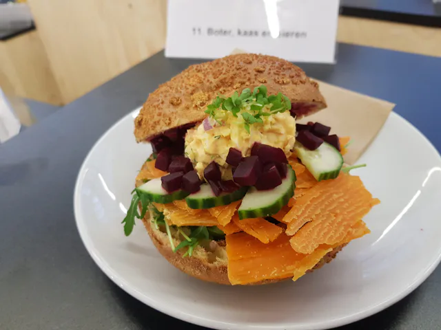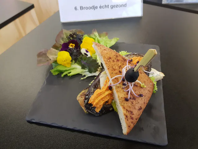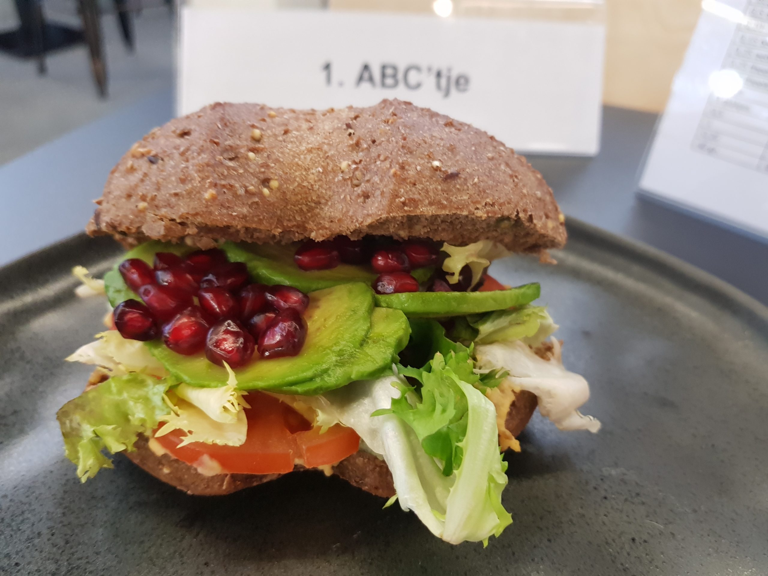 Raquelle Bos, werkzaam bij restaurant Basalt in zorglocatie Ipse de Bruggen in Delft, werd tweede met ‘Broodje écht gezond’: een foccaciabroodje met zelfgemaakte kruidenkwark, pesto, verschillende gegrilde groenten en tomaten americain.