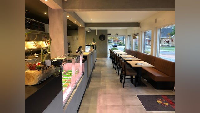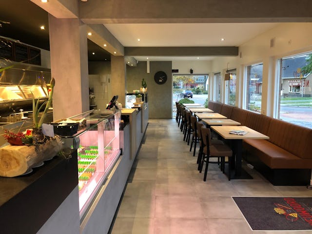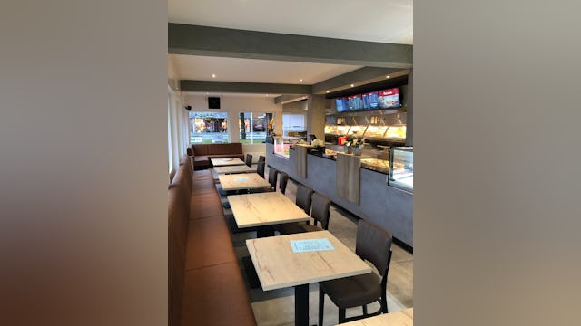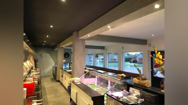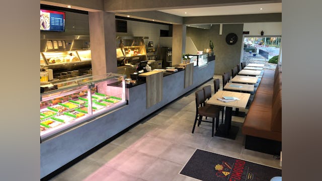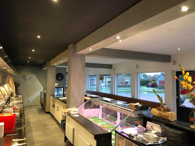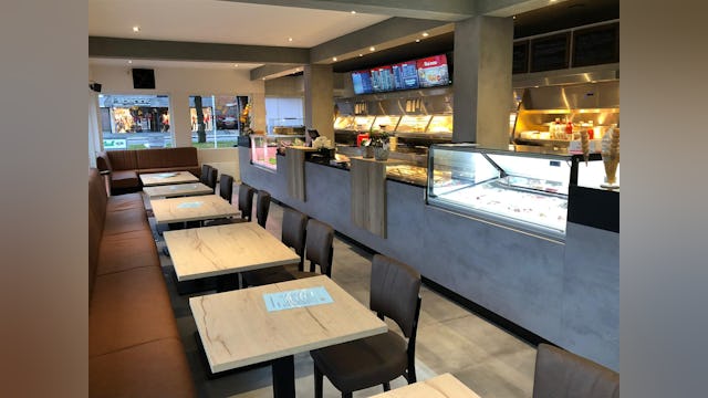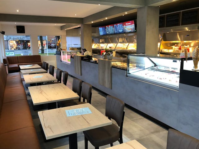 De cafetaria, in 1991 geopend door de ouders van Emill, is groter geworden. In hetzelfde pand, achter de cafetaria, runnen de ondernemers ook een café. Daar hebben ze een stukje vanaf gehaald en bij de cafetaria gevoegd. Daardoor is er 35 vierkante meter bijgekomen, voor een totaal van 70. Ook het aantal zitplekken is toegenomen, van acht naar twintig.’ Het interieur is verzorgd door Homint.