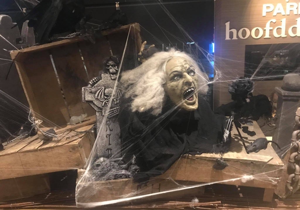 Verhage Floriande in Hoofddorp heeft de hele zaak omgebouwd tot spookhuis. Eigenaar Marco Honsbeek doet dat al jaren, en heeft dit keer een Halloween-klaslokaal midden in de cafetaria gebouwd. Gasten die met hun kinderen plaats durven te nemen in de schoolbank en daarvan een foto op Facebook of Instagram plaatsen, krijgen een gratis bolletje Zucca Pumpkin of Halloween-ijs (trekdropijs).