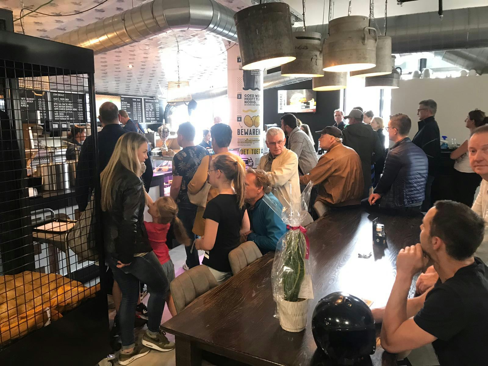 Volgens eigenaar Ton Verhoeven kwamen er tussen de 1000 en 1500 mensen af op de opening. ‘Veel gezinnen. Kinderen konden een ijsje en een Pieperz-diploma verdienen met onder meer friet snijden, aardappelzak lopen en aardappel werpen op het plein, waar we ook een springkussen hadden staan van ons Davino-ijs.