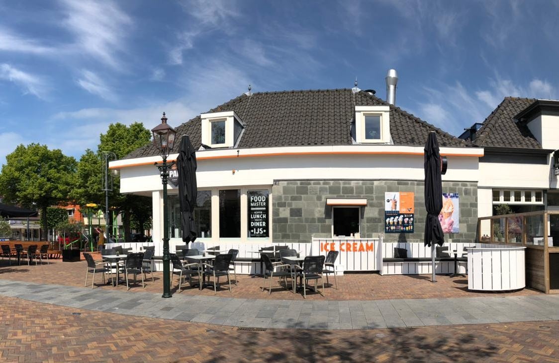 De Parel heeft sinds kort meer terrasruimte; naast de tafels aan de voorkant kunnen gasten ook aan de zijkant van het pand zitten, bij het ijsraam aan het Marktplein. ‘Waar de nieuwe banken staan, dat waren voorheen parkeerplaatsen. Maar met de herinrichting van het Marktplein konden we een terras neerzetten dat het hele jaar kan blijven staan. Dus ik wilde iets permanent neerzetten.’