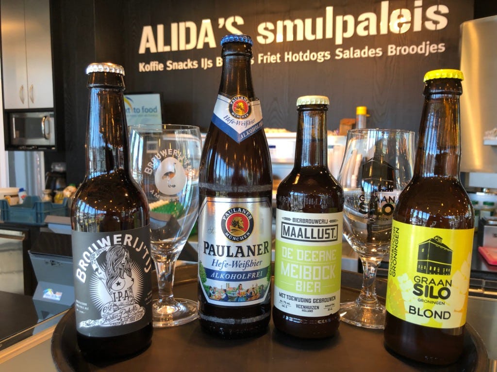 Alida’s Smulpaleis schonk al speciaalbier van één brouwerij, Maallust in Veenhuizen. ‘Daar hebben we bieren van twee brouwerijen uit de directe omgeving aan toegevoegd: Graansilo Bier van brouwerij Martinus in Groningen en Vrolijcke Joncker in Zevenhuizen. Dat zijn drie brouwerijen in een omtrek van 20 kilometer van de zaak.’