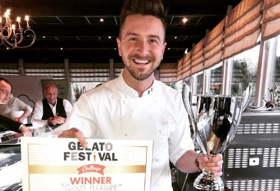 De creatie van Stefan Beerens (27) is een combinatie van ijs op basis van witte chocolade, sinaasappel, gezouten caramel en een crunch van pecannoten. Beerens mag met zijn creatie Nederland vertegenwoordigen op het Europees Kampioenschap van de Gelato Festival Challenge, volgend jaar in Italië. Ook de nummers één en twee van 2018 doen daar aan mee.