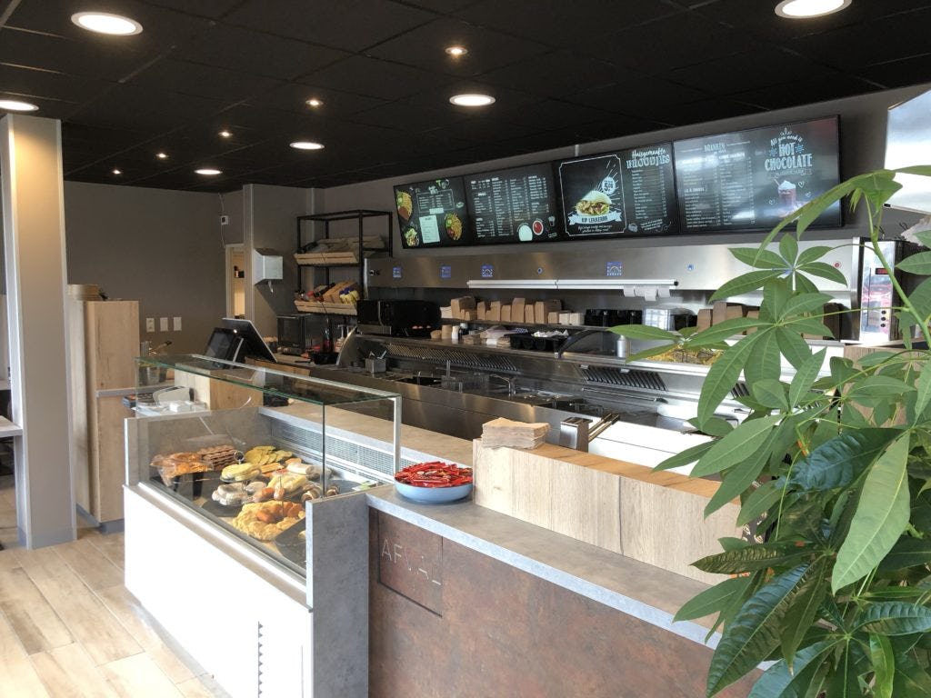 Ook is er een nieuwe bakwand geplaatst, van De Kuiper Horeca. Het aantal friet- en snackmandjes (2 maal 3 en 2 maal 2) is hetzelfde gebleven. Wel zit er een grote bakplaat in van 80 bij 60 centimeter. Cafetaria Lekkerrr verkoopt veel hamburgers en sateetjes. ‘Die plaat ligt dus regelmatig vol’, zegt Hagelen.