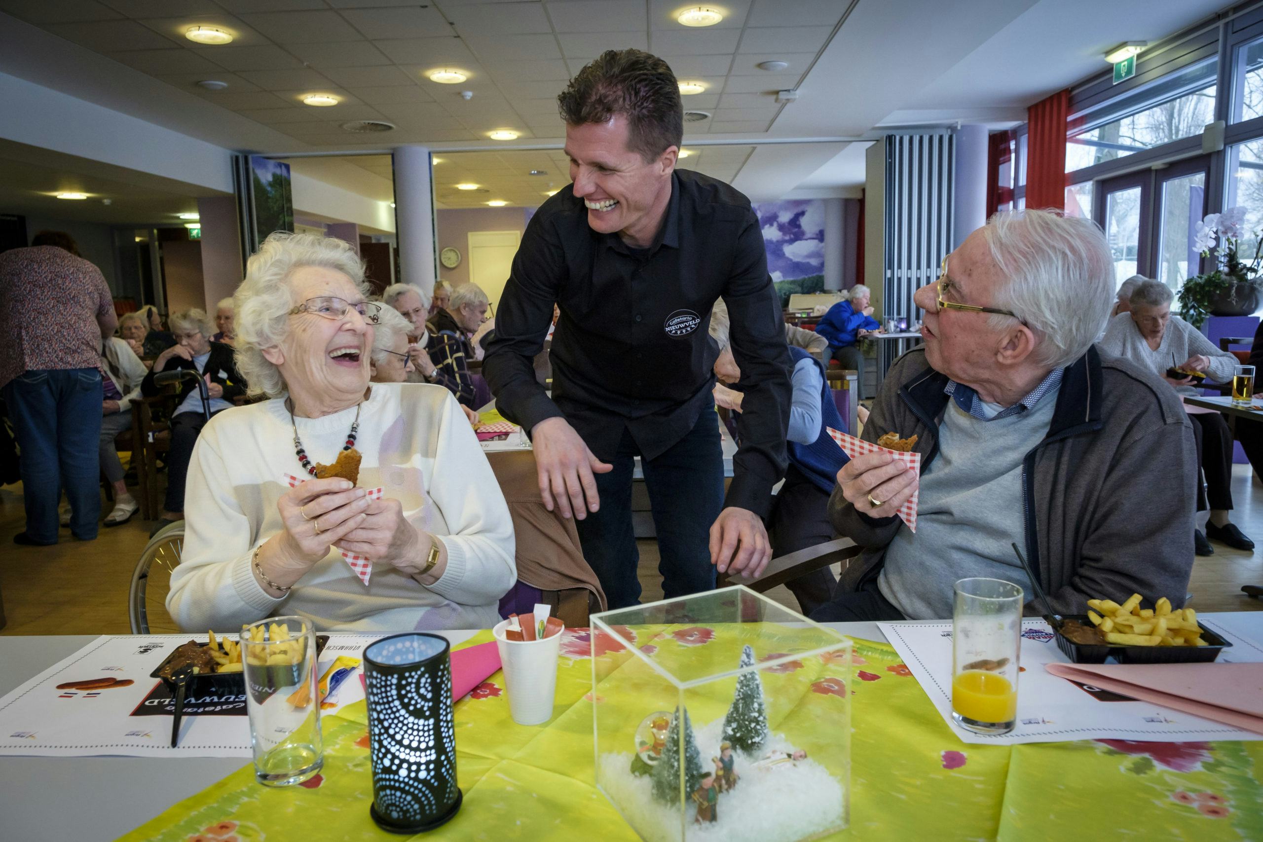 Patrick Nieuwveld was op dinsdag 22 januari aan de beurt bij Hooge-Werf in Poortugaal, een locatie van Argos Zorggroep. Natuurlijk bracht hij producten waar hij bekend om staat: friet met stoofvlees en kroketten. Nieuwveld had ook een dj ingehuurd die muziek draaide uit grootmoeders tijd.