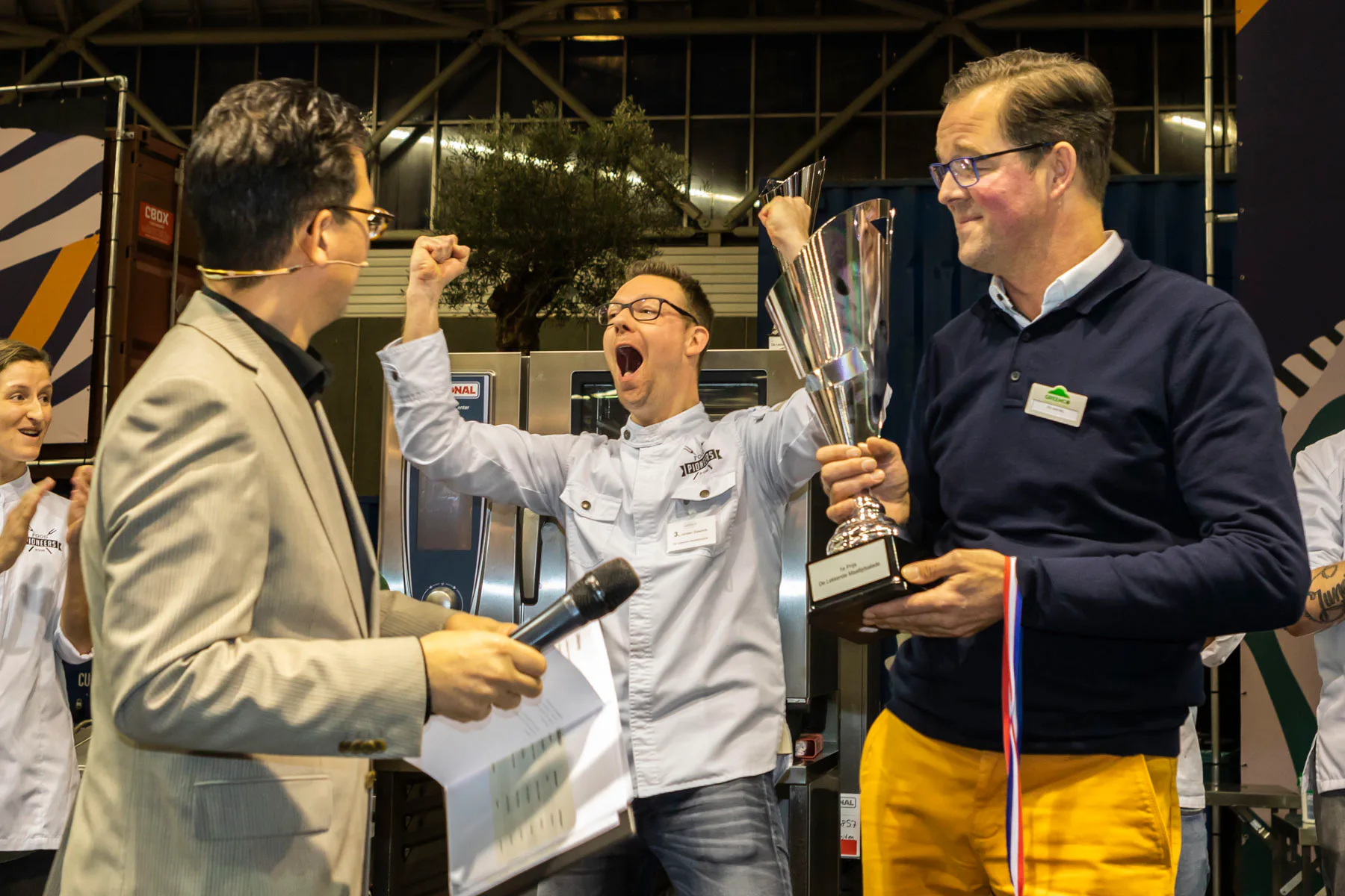 Top 3: Juriaan Swanink (midden), Roland Biermans, Vitam Catering (2e) en Floyd Meulenbeld, Eurest, Amsterdam (3e)