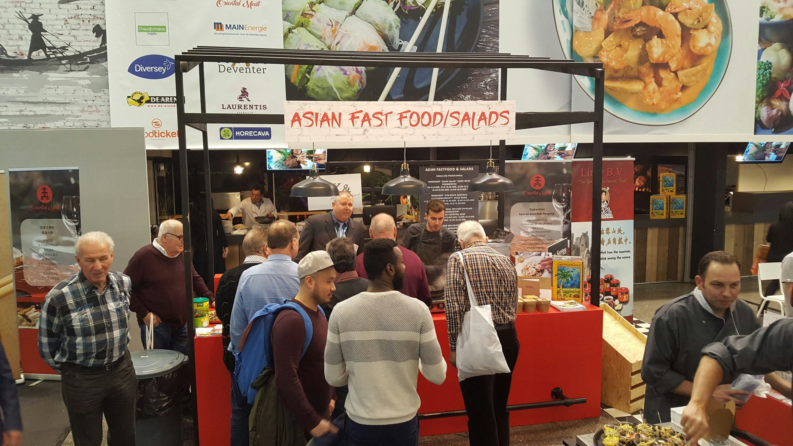 Bij Asian Fast Food & Salads worden de hele dag door vier workshops gegeven. Ten eerste laat leverancier Bieze vier verschillende Aziatische salades zien. Het basisproduct, zoals Zeewierbamie, Pastasalade en Tomaat-komkommersalade, kunnen verfraaid worden met bijvoorbeeld krab, garnalen, tofu en sojabonen. Deze concepten zijn ontwikkeld samen met de VCHO, de Vereniging voor Chineze en Aziatische Horeca Ondernemers. Met de inbreng van chefs zijn de toevoegingen bedacht.