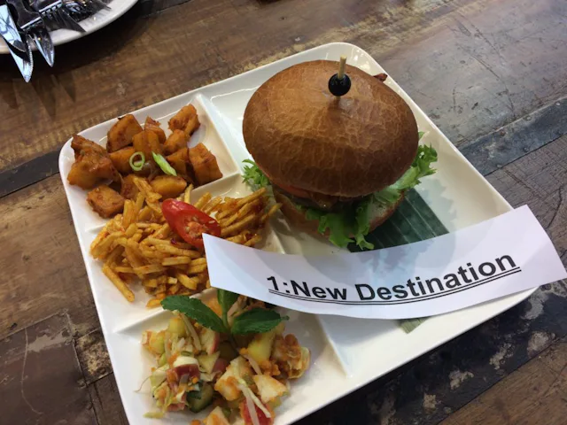 Palimbong koos voor zijn hamburger een briochebol van Carl Siegert en speelde daarnaast met verschillende Indonesische en Nederlandse ingrediënten. ‘Vorig jaar had ik geen tomaat en bacon gebruikt, dit jaar wel’, zegt hij. ‘Ik heb gekozen voor 40 procent klassieke hamburgeringrediënten 60 procent Indonesische.’
