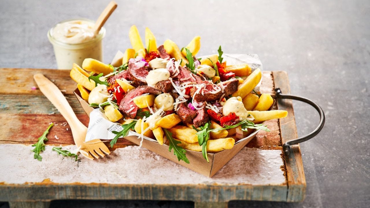 De hamvraag is natuurlijk hoe je een succesvolle loaded fries-variant ontwikkelt? ‘Om succesvol te zijn in loaded fries moet je vooral out-of-the-box denken, verschillende smaken en ingrediënten dúrven te combineren’, benadrukt de chef-kok. ‘En daarbij ook niet bang zijn om risico te nemen. Ofwel: stap uit je comfortzone. Dat loaded fries zo succesvol zijn, komt vooral omdat deze gerechten ideaal zijn om je als horecazaak mee te onderscheiden, je eigen gezicht en creativiteit te tonen.’