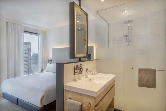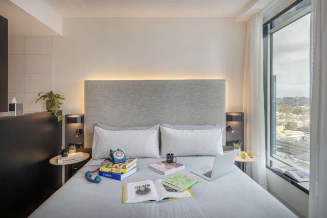 De in totaal 328 hotelkamers zijn ingedeeld in verschillende kamercategorieën, variërend van Contemporary tot Premium. Er zijn ook ruimere ‘Lofts’ en ‘Townhouses’ op de 17de en 18de verdieping met uitzicht over de stad. De kamers variëren in grootte van 19 tot 47 vierkante meter en zijn licht van kleur en inrichting. De Townhouses bieden naast een regendouche ook een bad. Alle kamers zijn voorzien van een designer badkamer met inloopdouche, een kingsize bed, hoge kwaliteit bedlinnen, een Led TV met Chromecast en airconditioning.