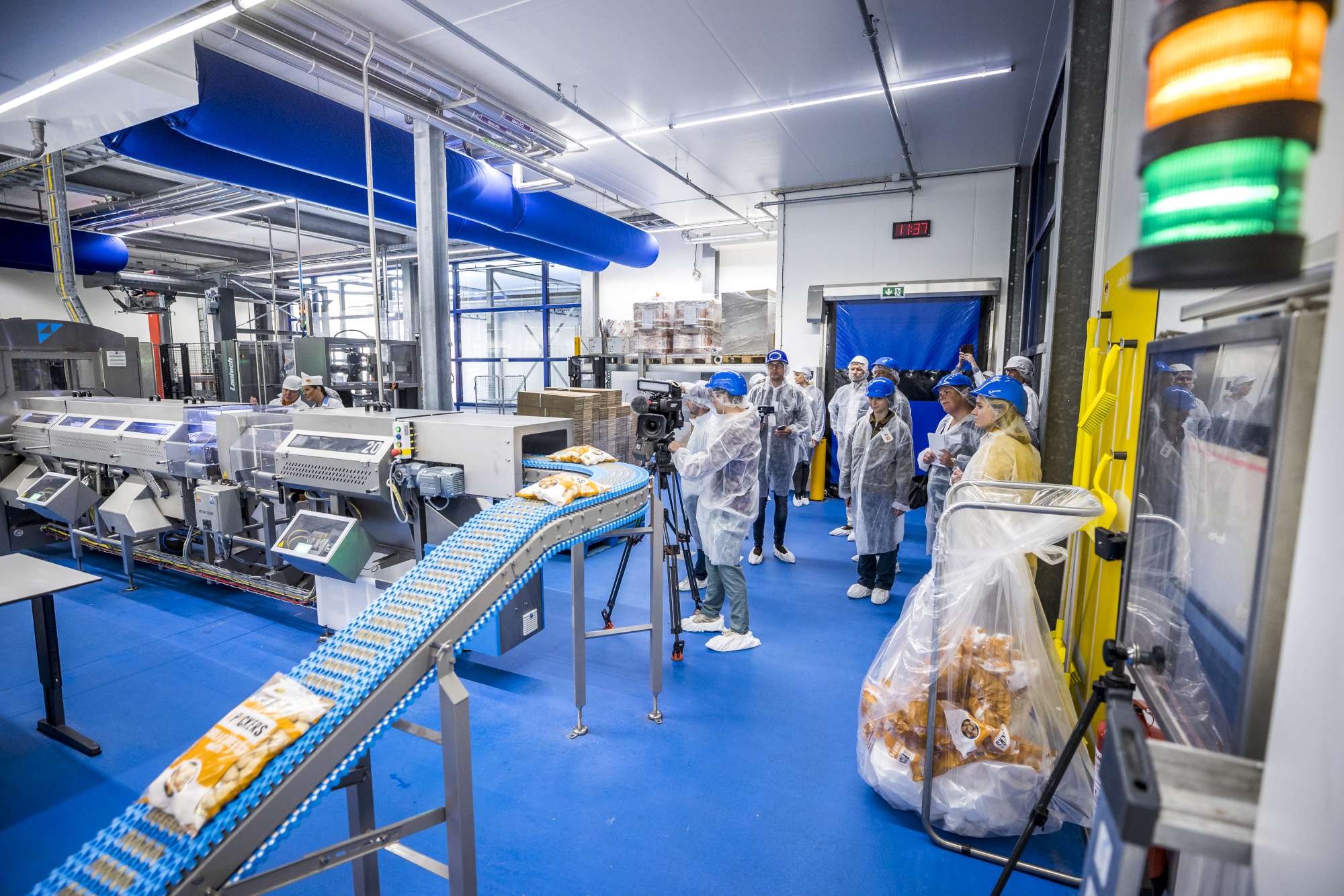 Fabrieksdirecteur Madelon Hermes is blij dat de fabriekshal nu wordt geopend en volledig operationeel is: ‘Ik realiseer me dat we een hoop van onze mensen hebben gevraagd om deze fantastische hal te kunnen openen. Ik ben trots dat we nu in deze state of the art omgeving onze snacks mogen gaan produceren.’