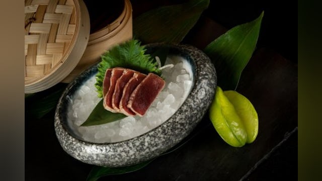 In de keuken wordt gewerkt met wagyu beef, truffel en geflambeerde zeebaars. Sashimi, bereidt met frisse smaken en verse kruiden, is één van de specialiteiten van de chef. Yue: ‘Ik houd van ingrediënten als yuzu en lime. Met frisse zuren kun je de smaken van de gerechten omhoog brengen. Dat kan bijvoorbeeld erg goed bij zalm, zeebaars en sint- jakobsschelpen. Daarnaast houd ik erg van gegrild vlees, zoals ossenhaas qubes met sake-sojasaus van de teppanyaki. Of mijn favoriet; beef tataki met een yuzu ponzu saus.’
