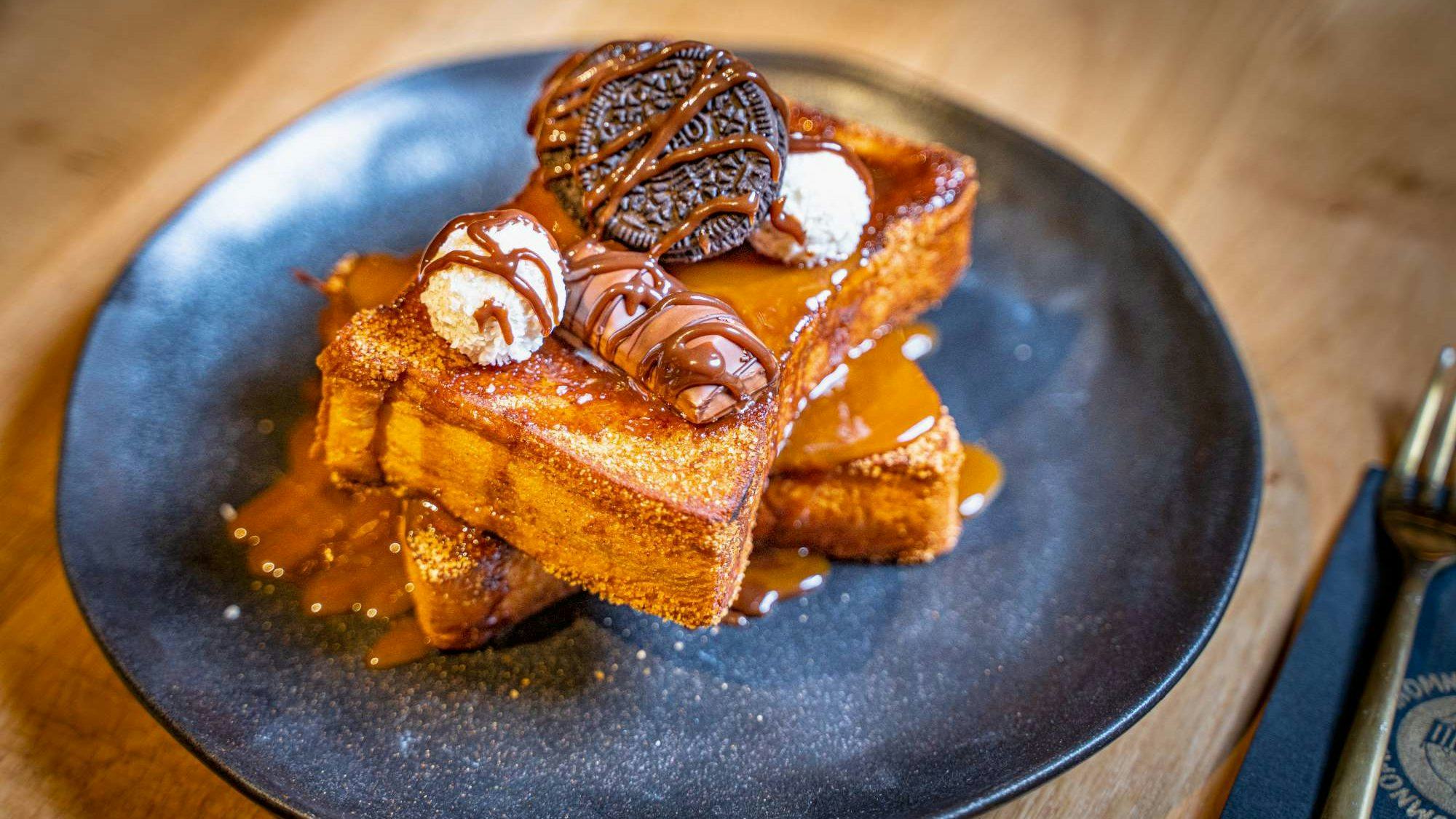 De French Toasts worden gemaakt met vers briochebrood met verschillende 'toppings'. De S’mores French Toast heeft marshmallows, volkorenkoekjes en chocoladesaus. Andere combinaties: de Chilli Cheese Cheetos met geraspte kaas, Flaming Hot Cheetos en warme Cheddar Cheese Sauce, die aan tafel over de French Toast wordt gegoten.