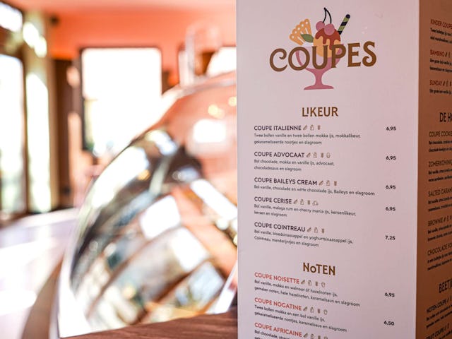 Kooij antwoordt bevestigend op de vraag of het resultaat uniek is voor ons land. ‘Ik denk inderdaad dat dit er nog niet is in Nederland. Misschien wilde ik stiekem wel de mooiste ijssalon van het land hebben. Dit gaat zoveel verder dan alleen ijs. De routing klopt, de vitrine is fantastisch en de beleving top.’
