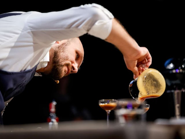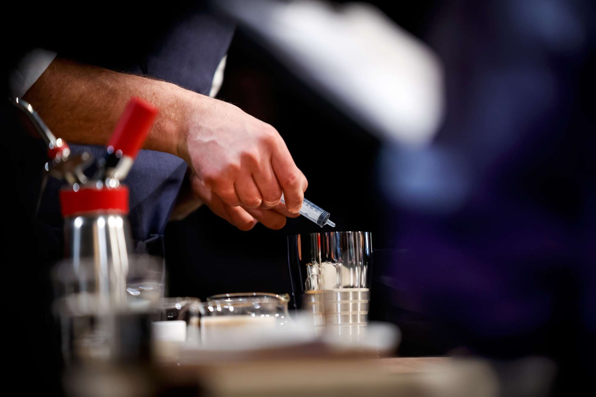 Voor zijn signature drink, waarbij de voorwaarde is dat er geen alcohol in mag zitten en espresso de hoofdrol moet spelen, liet hij zich inspireren door de drie fasen van koffie: groeien, verwerken en branden. De groeifase vertaalde hij met ter plekke geïnfuseerde dennennaaldensiroop, de verwerking van koffie kwam terug als amazake van gerst, het branden van koffie werd vertegenwoordigd door de koffie zelf.