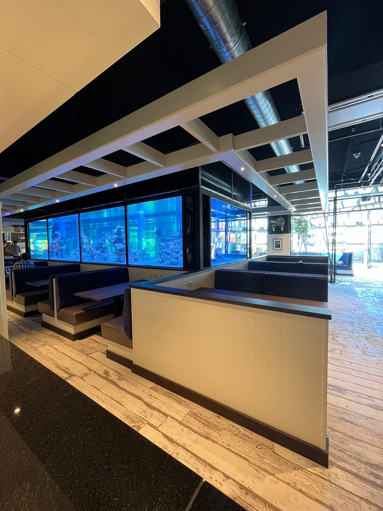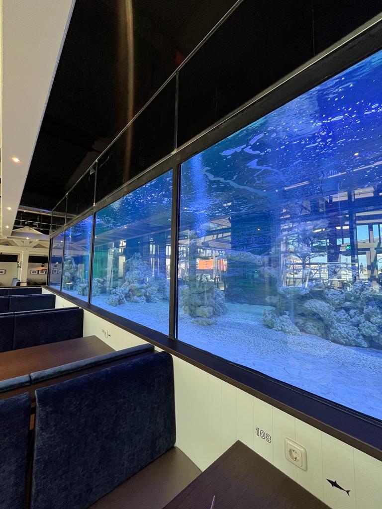 Maar voordat je een aquarium met meerdere haaien en maar liefst 40.000 liter water in je restaurant plaatst, is wel wat research nodig. Er werd een leverancier gevonden die ook de aquaria maakte voor diverse dierentuinen in Nederland en België.