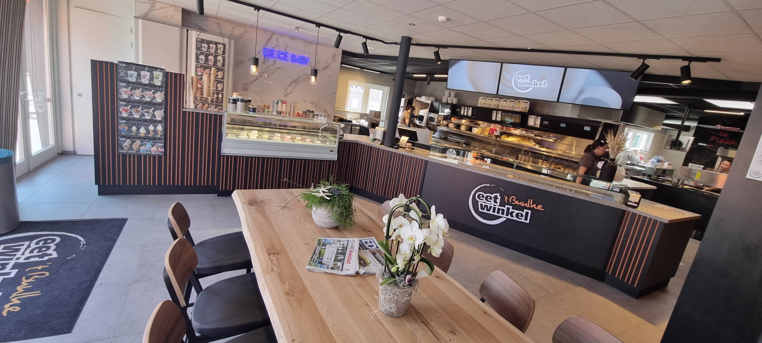 Neeskens: 'Het pand is compleet casco gestript. Er zijn muren uitgebroken en nieuwe indelingen gemetseld. Daken zijn gesloopt, goed geïsoleerd en bekleed. Alle raampartijen zijn vervangen door nieuwe kozijnen met dubbel geïsoleerd glas en we hebben alleen nog maar ledverlichting. Iets waar we enorm trots op zijn, is onze nieuwe bakwand zonder gasaansluiting, er wordt alleen elektrisch gefrituurd. Een duurzame zaak waarmee Eetwinkel ’t Buulke klaar is voor de komende generaties gasten.'