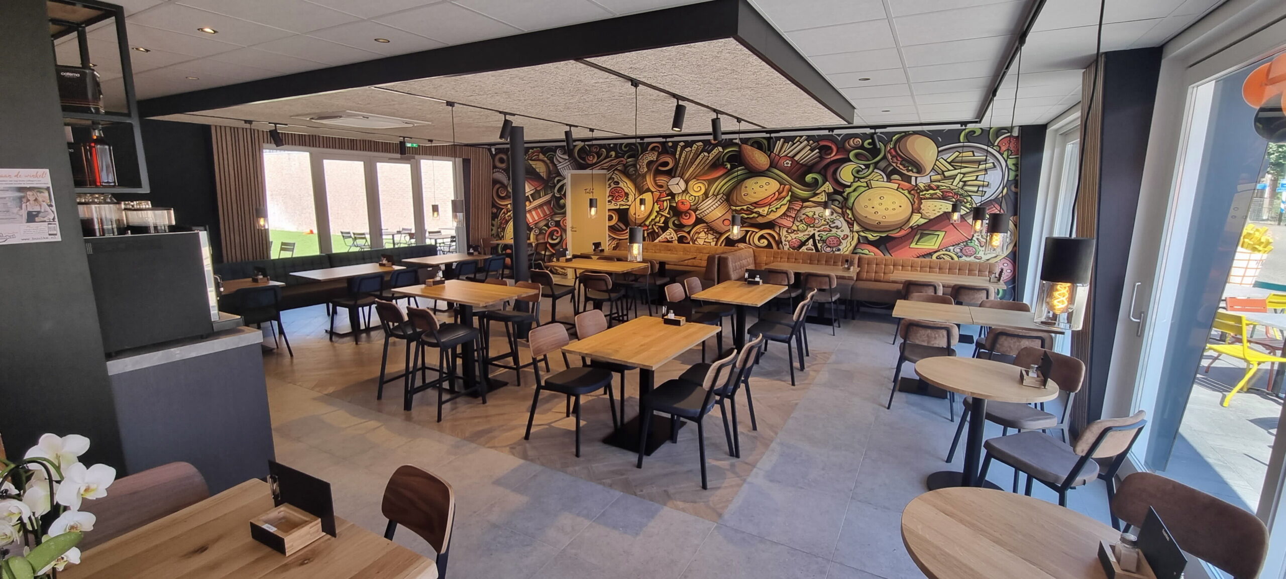 Op de nieuwe locatie is meer mogelijk. Zo zijn er fijne zitplaatsen en is een groot terras met moderne uitstraling gecreëerd. In het restaurantgedeelte met ruim 70 zitplaatsen biedt de menukaart keuze voor het hele gezin. Het nieuwe terras is een echt pluspunt.