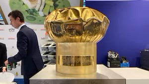 De Gouden Kokmuts stond tijdens de wedstijd op een prominente plek in de wedstrijdarena te schitteren om de deelnemers nog meer motivatie te geven.