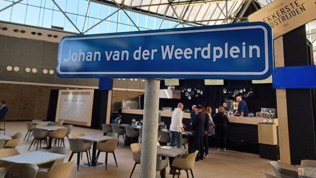 Eventmanager Bernd Beekman onthulde een straatnaambord waarmee het plein voor het wedstrijdpodium vanaf nu is omgedoopt tot het Johan van der Weerdplein. 'Ik besef nu pas wat het betekent om 39 jaar ten dienste te mogen zijn van het mooie vak dat wij met z'n allen uitoefenen', zei Van der Weerd. 'Ik kijk er met veel plezier op terug en ik wens iedereen het allerbeste.'