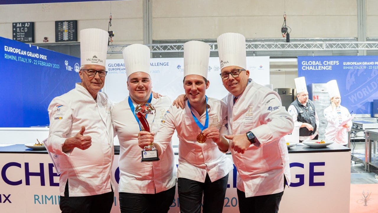 Bert van Manen, teammanager van het Nederlands Culinair Team, is enorm trots op Tom en Tim. 'In november zijn wij uitgenodigd door de Italiaanse chefsvereniging om deel te nemen aan deze wedstrijd en de jongens hebben dit heel snel opgepakt. Ondanks de korte voorbereidingstijd hebben zij een topprestatie neergezet en ik heb er alle vertrouwen in dat zij volgend jaar in Singapore hoge ogen gaan gooien.'