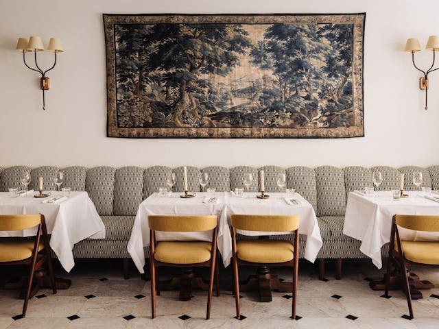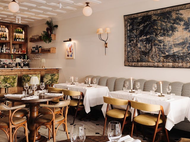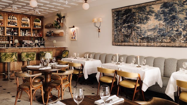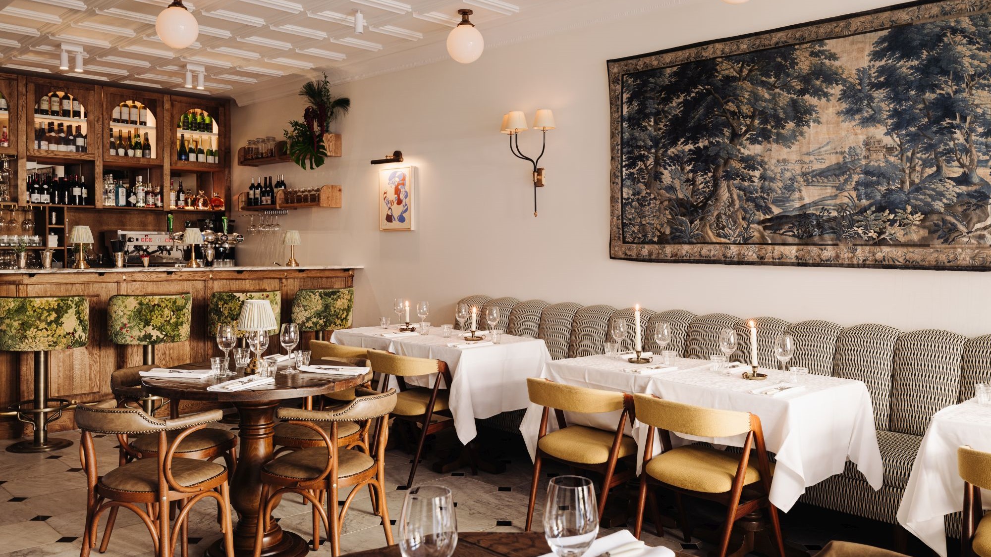 Het restaurant ademt de sfeer van een Franse bistro. Door de antieke tegels, de karakteristieke lampen en houten meubels wanen gasten zich in de interbellumperiode. Het gobelin wandtapijt heeft een prominente plek in de bistro en is een ode aan Frankrijk.