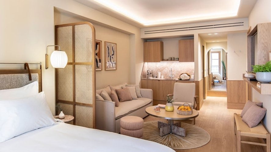 Àterre is ontworpen voor langere verblijven, zowel leisure als zakelijk. Dit nieuwe hotelconcept biedt verschillende soorten accommodaties voor gasten die twee dagen of twee maanden willen blijven, waaronder kamers, studio's en appartementen. Ook biedt het concept gasten de mogelijkheid voor hun verblijf de koelkast al te laten vullen met boodschappen.