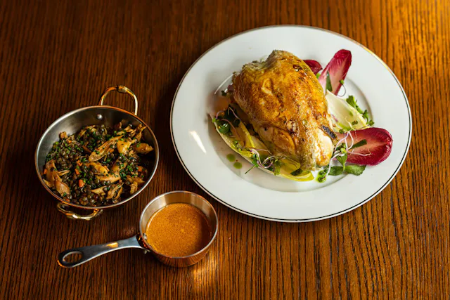 Het is deze verwijzing naar het verleden, wat een neo-brasserie als Gossler & Florin ook voor ogen heeft. De chefs laten zich inspireren door de gerechten van de traditionele Franse brasserie, maar geven deze, door de moderne kooktechnieken en een innovatieve, creatieve stijl van koken, een eigentijdse twist. De Onglet Béarnaise met een glazuur van zwarte knoflook, een crunch van colombo kruiden, béarnaise uit de kidde, dragon en zoetzure sjalot met boeuf bourguignon on the side is een goed voorbeeld waarin het beste van het verleden en het heden samenkomen.