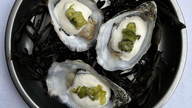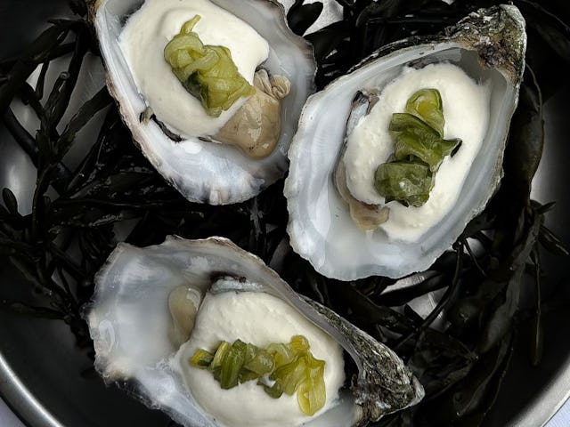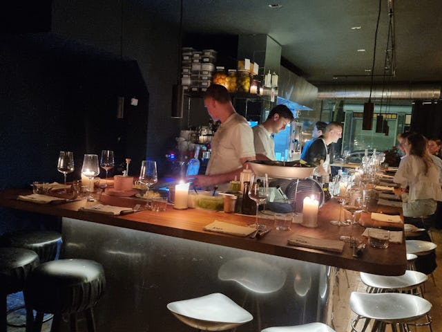 ‘Petit Péché betekent letterlijk kleine zonde’, vertelt Kim Jongbloed, een van de oprichters van Café Beurre. ‘Daar willen we laten zien dat het ook mogelijk is om anders meer respectvol met vlees en vis te koken. Dat doen we in alle openheid, achter de bar, zichtbaar voor alle gasten. We gebruiken lokale producten en delen van de dieren die niet zo vaak gebruikt worden. Denk daarbij aan lamsballen of kippenhart en maagjes.’