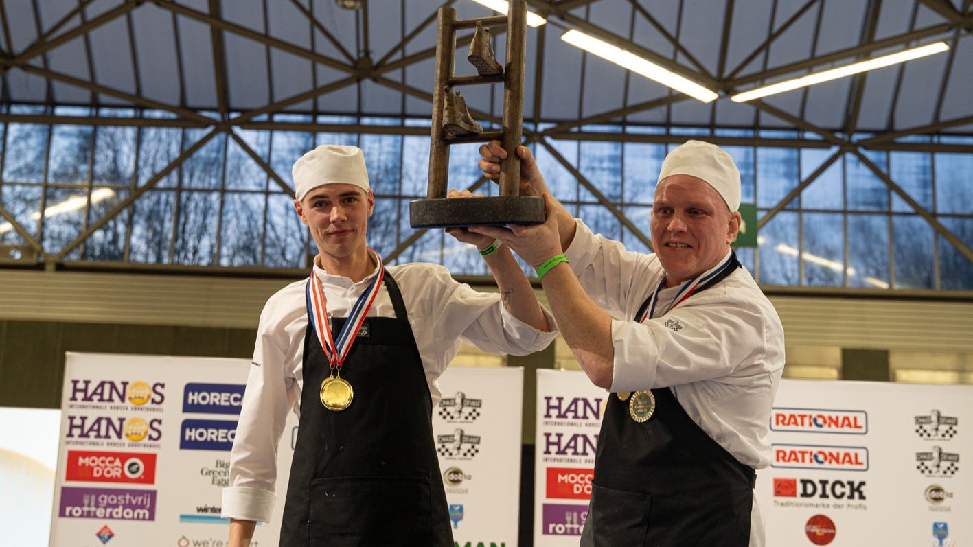 Leermeester Kay Stevense en leerling Gijs Boender van Hotel-Restaurant 't Lansink overtroffen de verwachtingen van de jury met hun gerechten en zijn daarom de nieuwe Nederlands Kampioenen. De deelnemers mochten de amuse onvoorbereid meenemen en kookte een 3 gangen menu uit een blackbox.