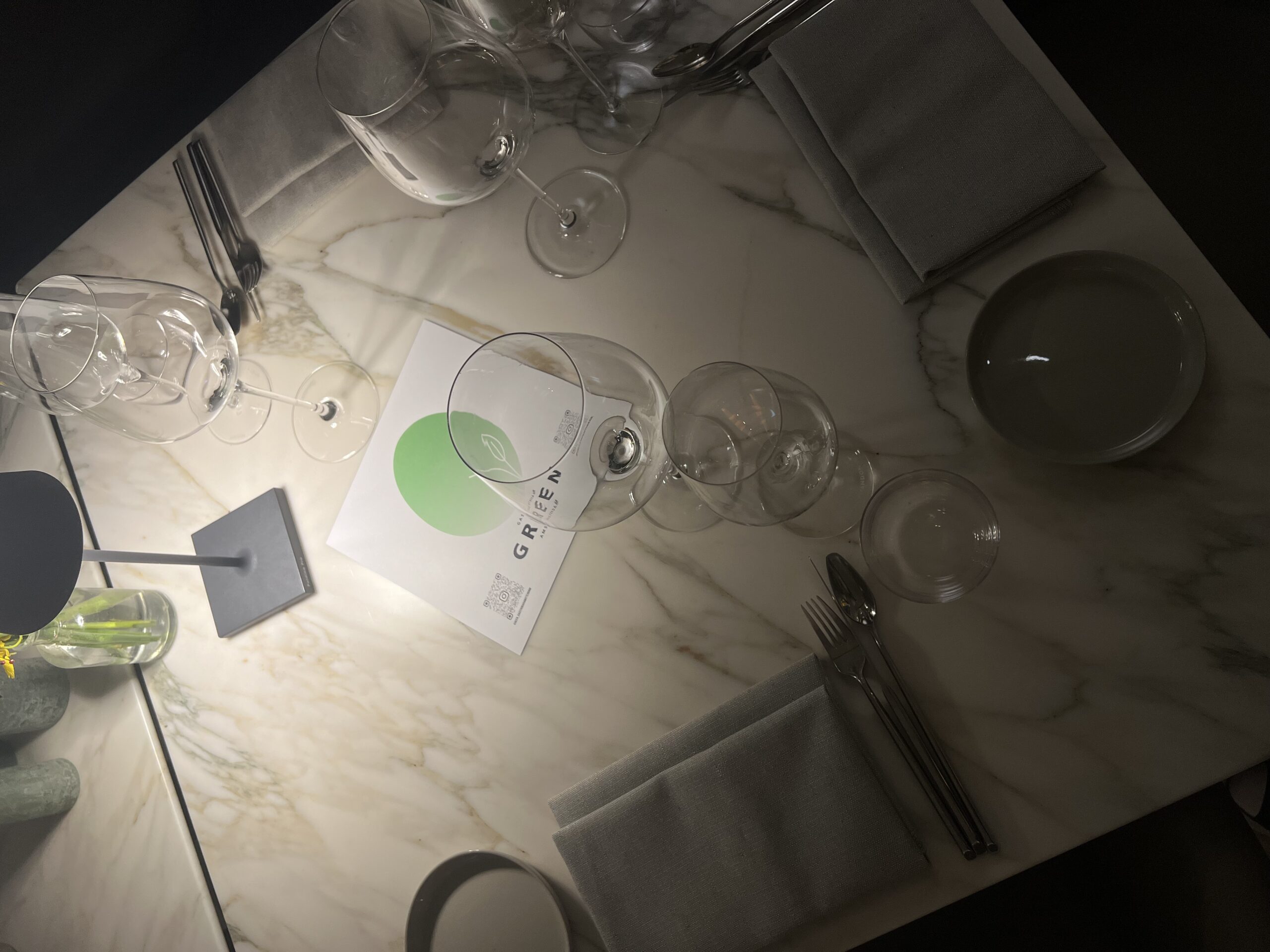 Green wil in een ongedwongen setting topkwaliteit bieden. Geen fluister-fine-dining, maar een gezellige plek waar zowel de keuken als de bar centraal staan. De chefs koken met verse producten die voor een groot deel van het eigen land van Peter en Marieke komen. En wat niet in eigen beheer groeit, wordt ingekocht bij lokale leveranciers.