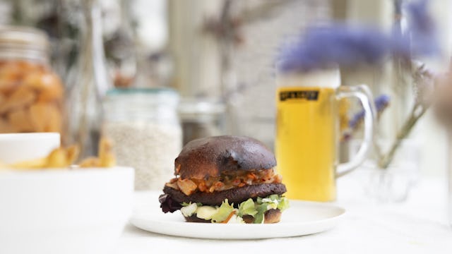 Falafel gemaakt van groenteafval, pasta van regeneratieve gewassen en plantaardige köfte van gluten: de producten van ondernemers uit BlueCity belanden in Bar Stroom op het bord. De iconische oesterzwammen van Rotterzwam, gekweekt op eigen koffiedik, verschijnen op tafel in de vorm van rendang of een bitterbal.