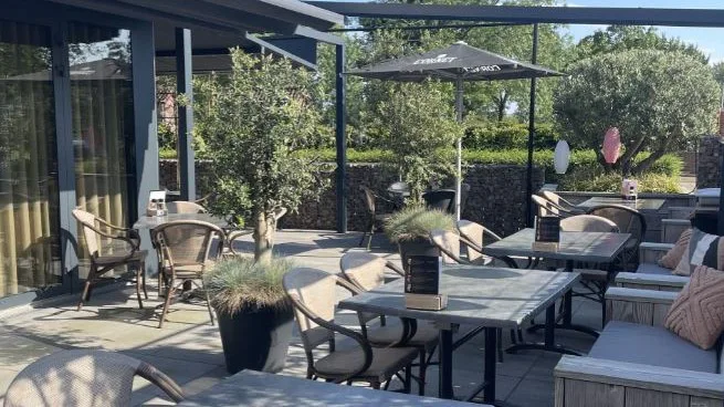 Het personeel is vriendelijk en correct, en de service is vlot. De medewerkster gaf bij het opnemen van een jurybestelling een uitgebreide lijst van alcoholvrij bier, waaronder Palm, La Trappe, Weihenstephaner, Bavaria en Cornet, en stelde diverse theesoorten voor, inclusief gemberthee. Ook wordt er aan de huisdieren gedacht, met het aanbieden van een waterbak voor de hond.