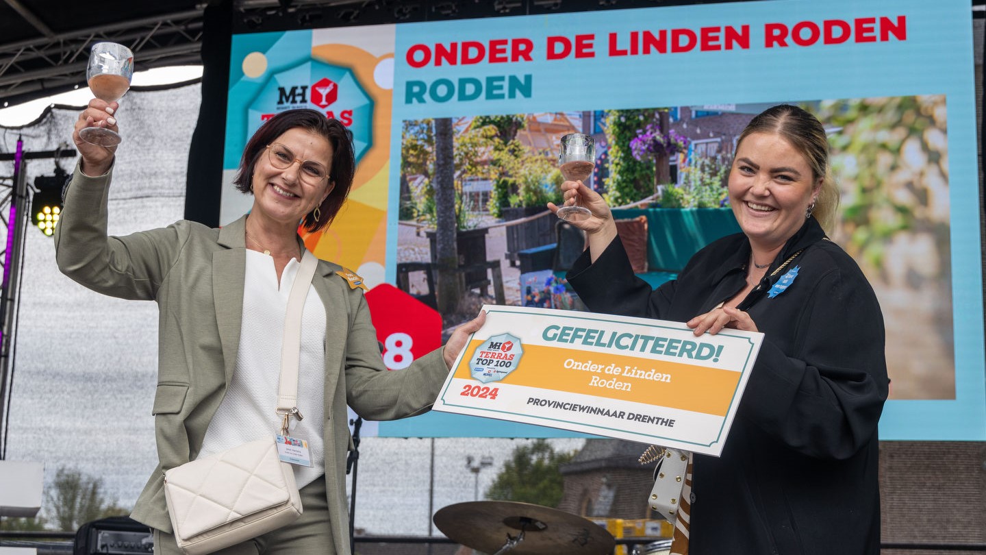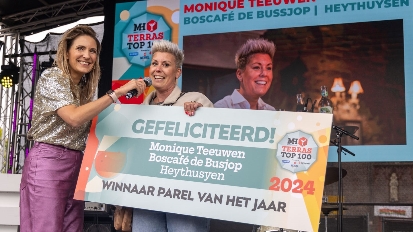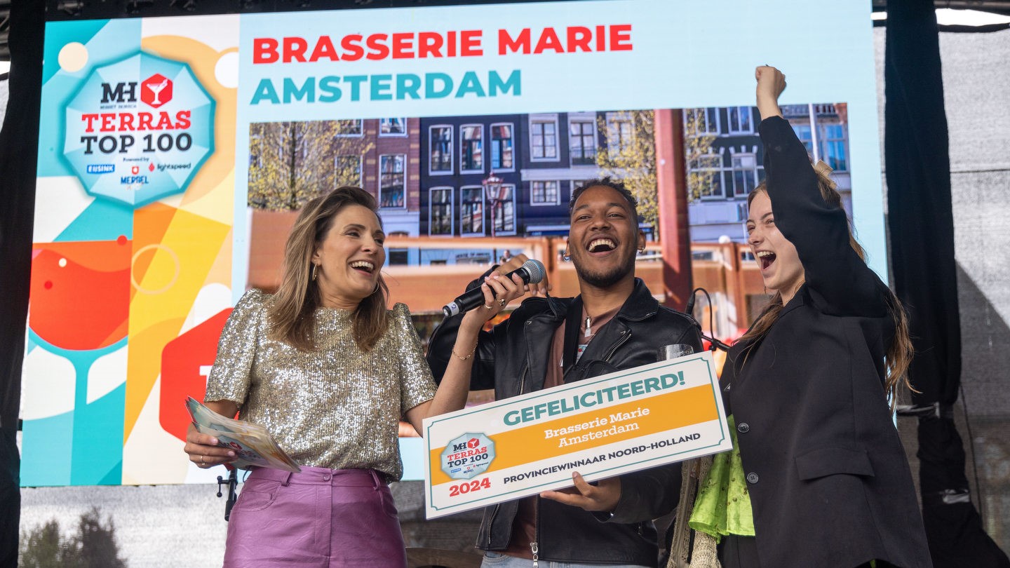 Het was een mooi feest, zo laten foto's van Terras Top 100 2024 zien. Centraal Baarlo mocht de prijs voor de nummer 1 van de Terras Top 100 in ontvangst nemen. De zaak die in 2022 eindigde op de derde plek, laat daarmee de nummers 2, Lake House in Bergschenhoek en 3, De Zoes uit Helden, achter zich.