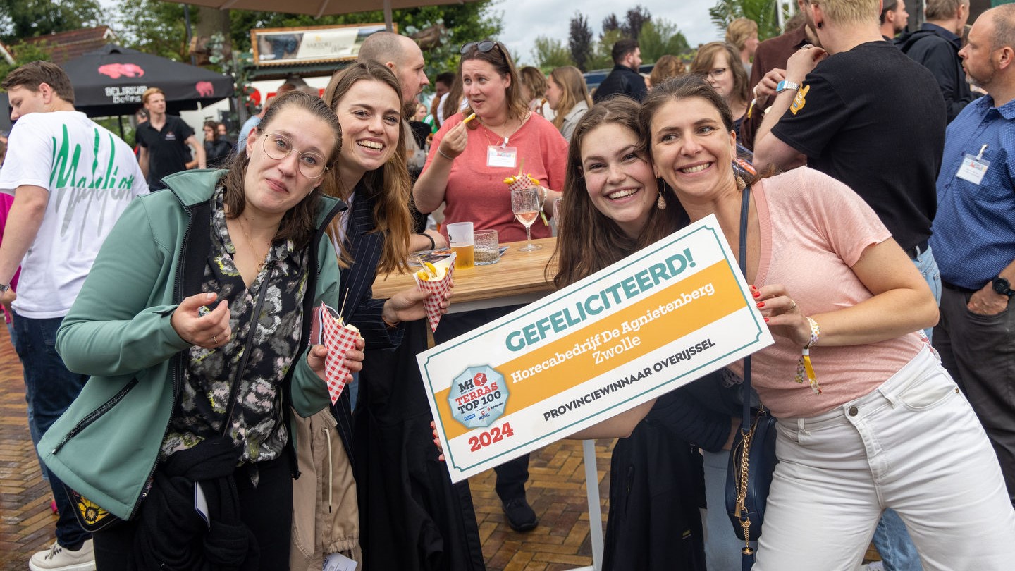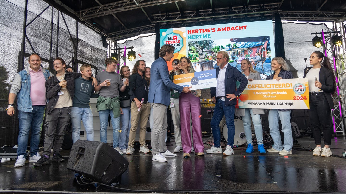 Honderden horecaprofessionals, ondernemers en hun teams, vierden maandag 1 juli de bekendmaking van de Terras Top 100 2024 bij Pelle's in Deurningen. Naast het bedrijf van de winnaar van vorig jaar was een sfeerval festivalterrein opgebouwd. Het regende af en toe, maar dat mocht de pret niet drukken.