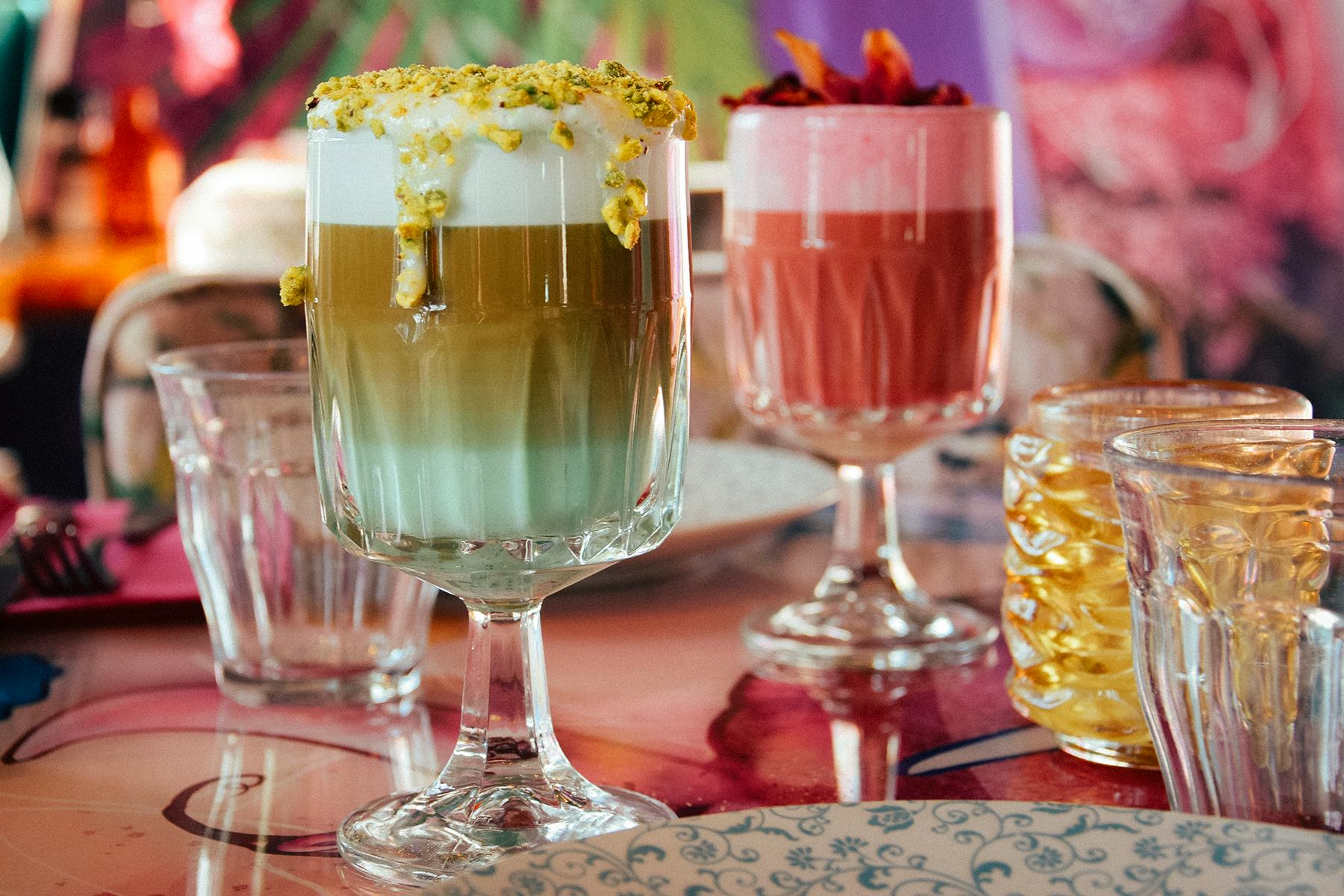De koffiebeleving bij BY AMI gaat verder dan smaak alleen. ‘We maken cappuccino’s met leuke teksten of figuurtjes op het melkschuim, wat onze gasten een lach bezorgt.’ Naast het standaard koffieassortiment biedt het restaurant ook eigen koffies aan zoals de ‘Brulee Cappuccino’, die volledig gekarameliseerd is. Ook de ‘Spanish Latte Pistachio’ is favoriet: hij wordt gepresenteerd in een mooi glas met kleurrijk schuim en verse nootjes. ‘De visuele presentatie creëert een extra wow-effect en nodigt uit om te delen met anderen. Ons concept is heel ‘Instagrammable’, vertelt Ahmed. ‘Ik wilde een concept bedenken dat voor mij een doorlopende marketing creëert.’