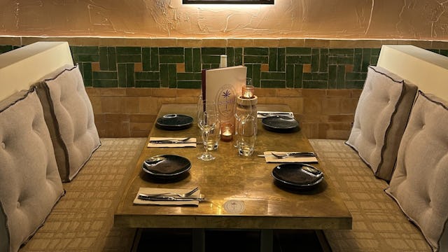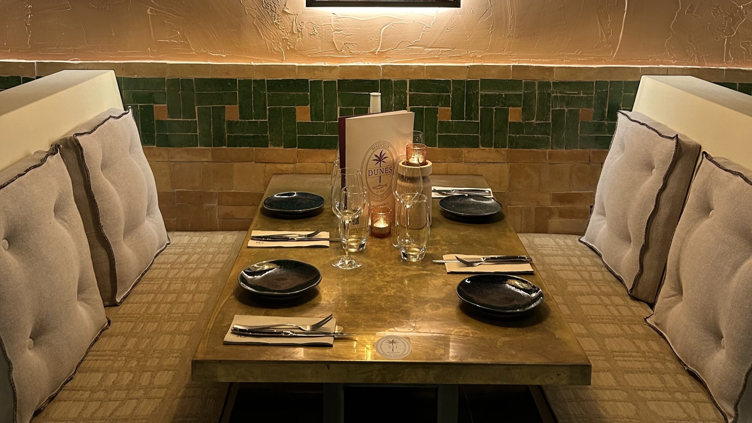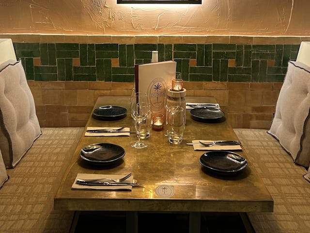Met de Dunes ceasar salad en geroosterde bloemkool met yoghurt sesam, koriander en granaatappel is er ook aan de vegetariërs en vegans gedacht. Op de desserkaart staat cheese cake, chocoladetaart en de Libanese pudding Haytaliyah.