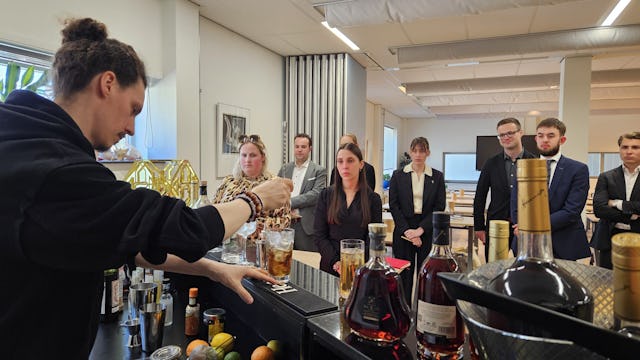 Het tweede deel van de eerste wedstrijdronde van de Nationale Hennessy Gastvrijheidsprijs 2025 stond in het teken van het vergaren van kennis. Zo was er een masterclass over Hennessy Cognac en hield SVH Meestergastheer Stan Kerckhoffs - werkzaam bij sterrenrestaurant Latour in Noordwijk - namens de Stichting Vakbekwaamheid Horeca een presentatie over de SVH Meesters.
