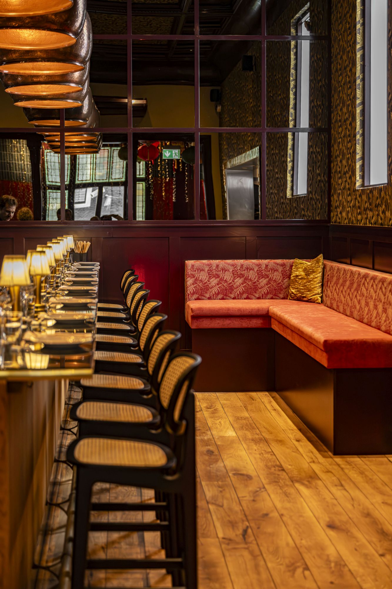 Chop Chop Asia is een plek waar je makkelijk binnenstapt en toch verrast wordt. Beneden kom je binnen in een entree die direct de juiste sfeer neerzet. De trap naar boven geeft al een voorproefje van de wereld waarin je terechtkomt. Het interieur is eigenzinnig en persoonlijk. Bas heeft, samen met professionals, vrienden en familie, zijn visie losgelaten op het geheel. Het resultaat is een mix van stijlen die perfect past bij de creatieve energie van Chop Chop.
