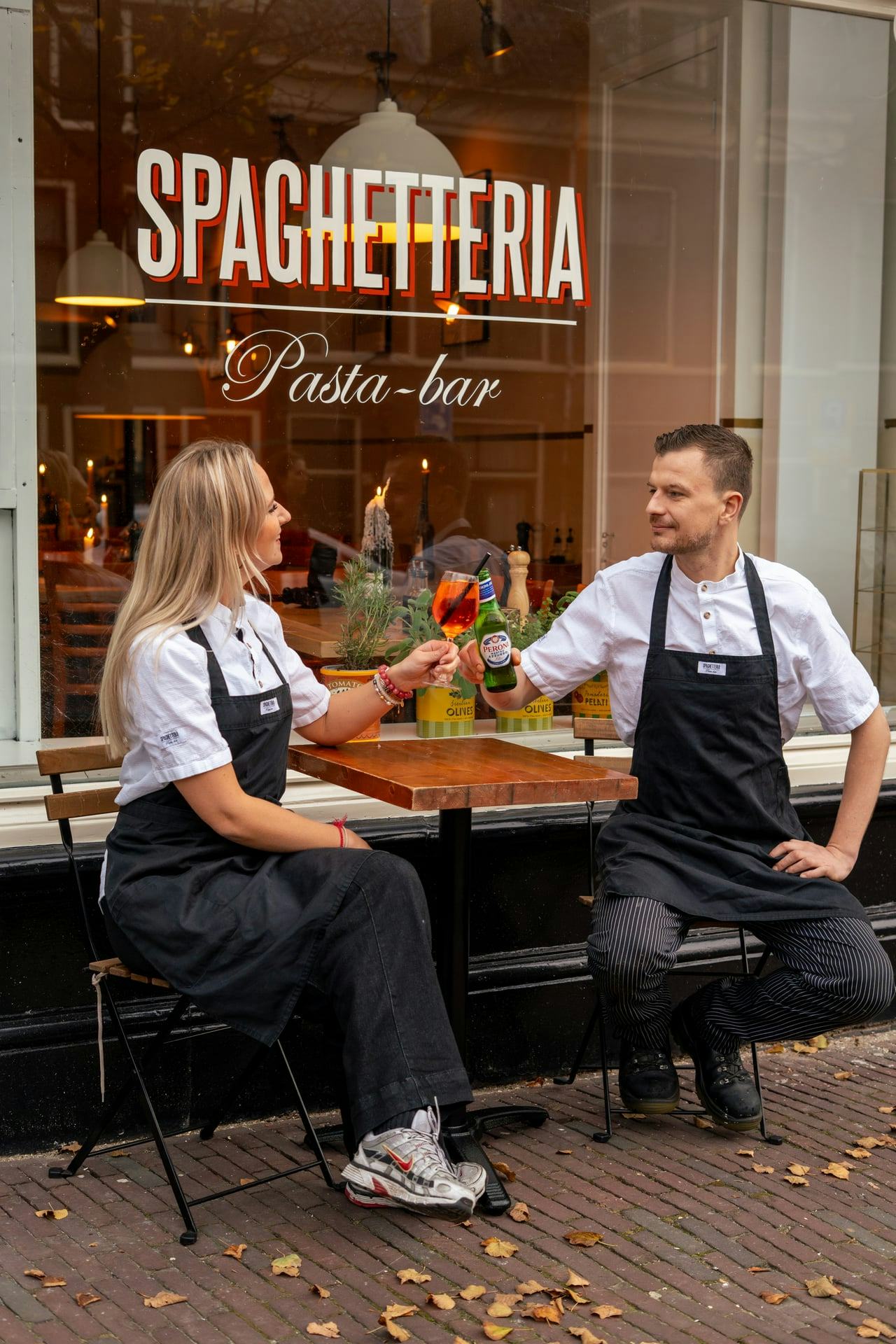 Het duo uit Leiden droeg bij de eigenaren van Spaghetteria zelf hun woonplaats aan als vestigingsplaats. Eveliene: ‘We zagen dat Spaghetteria wilde uitbreiden in Den Haag. Wij dachten: Leiden is daar ook een goede plek voor, want het is een leuke studentenstad. Dus zo hebben we dat ingestoken bij ‘founding father’ Bert Jimmink.’