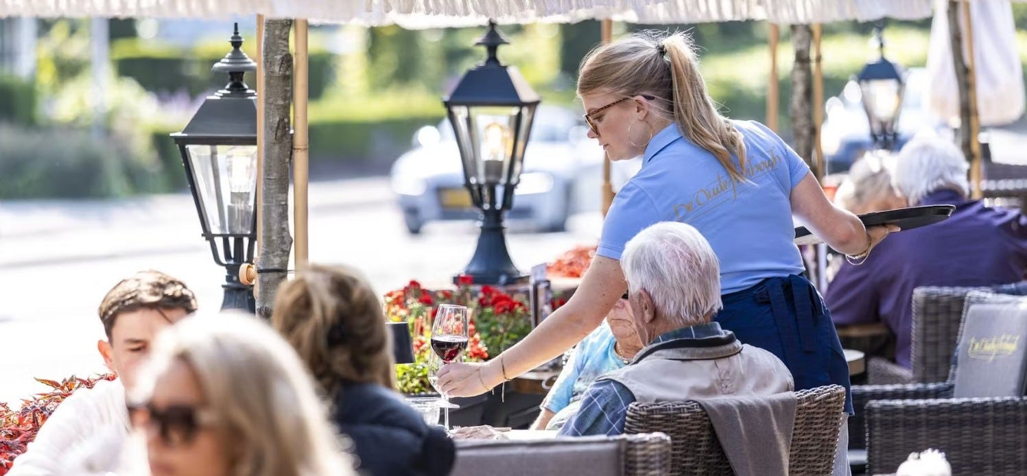 Het is ook de reden dat tijdens het hoogseizoen het terras steevast afgeladen vol zit. Gasten hangen nog net niet met de benen buiten. Dat doen ze in Oosterbeek niet door gebruik te maken van de nieuwste technologische snufjes zoals loyalty-apps, een AI-gestuurd reserveringssysteem of de zoveelste horecatrainer in te huren.