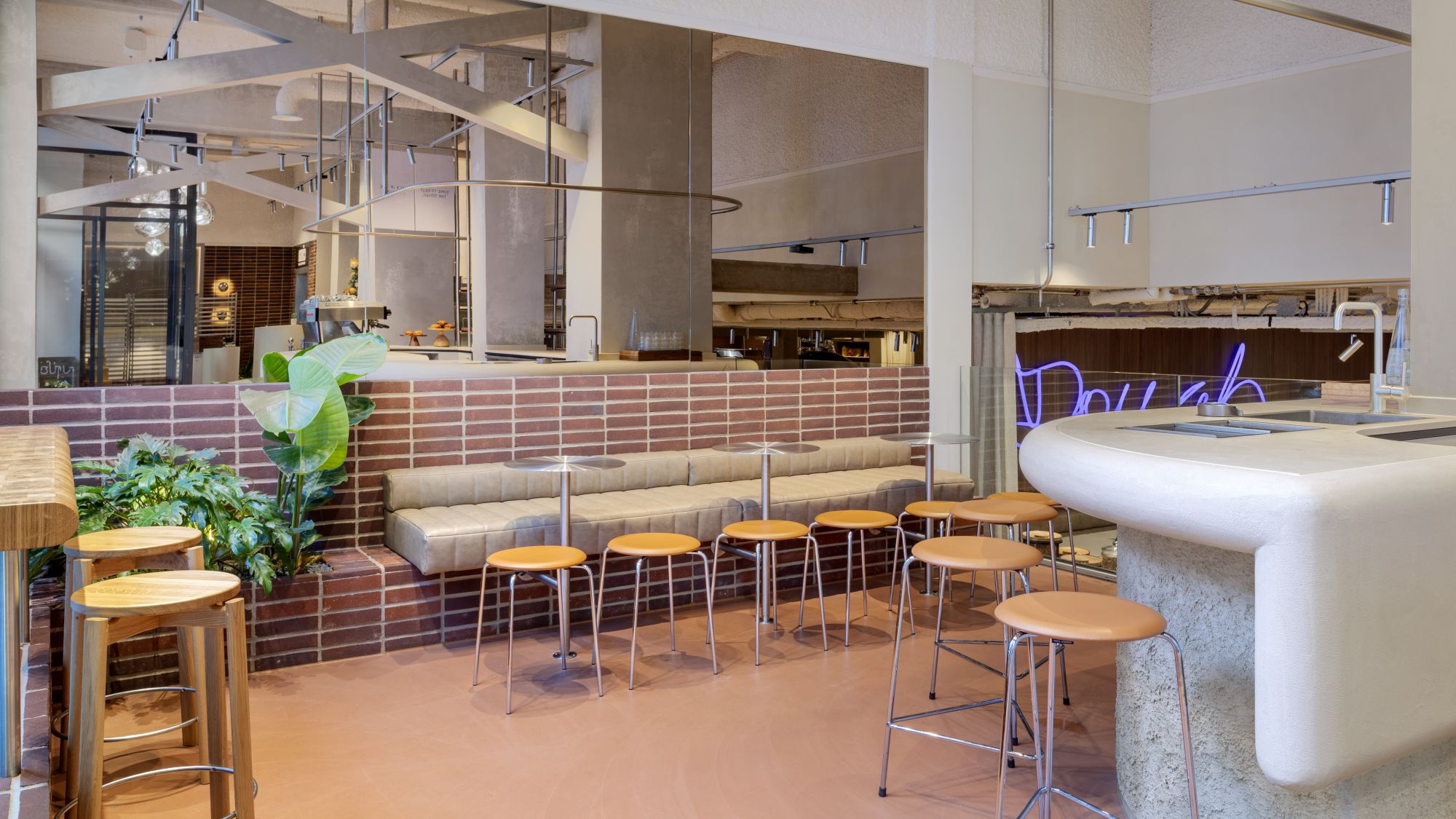 Aan de voorkant bevindt zich Janine Bakery: een plek waar buurtbewoners hun dag beginnen of even pauzeren, en voorbijgangers iets lekkers meenemen voor onderweg. Je vindt hier versgebakken brood, handgemaakte gebakjes in verrassende vormen, dranken van De Drinkfabriek en specialty coffee van LOT61.