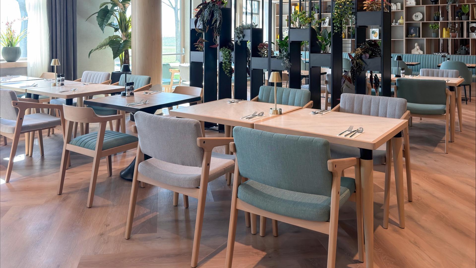 Het hotel is ontworpen met een sterke focus op rust en natuurlijke elementen. Het interieur ademt een moderne, Scandinavische sfeer uit, gekenmerkt door veel natuurlijk daglicht, warme houttexturen en een kalmerend kleurenpalet van blauw- en groentinten.