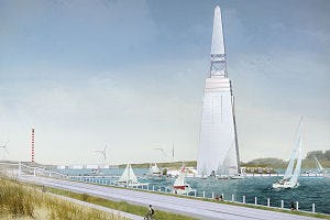 'Wat de Eiffeltoren voor Parijs is, zou deze hoteltoren voor Zeeland kunnen worden,' denkt architect van de toren Jan Verrelst . De plannen voor de hoteltoren zijn vorige week aan de gemeenteraad van Noord-Beveland gepresenteerd.