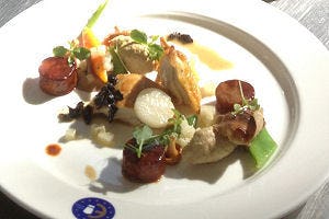 Boris Bassa, Ley Heijman en Pim Veen slaagden er het beste in de opdracht te volbrengen: een recept van August Escoffier met veel verschillende bereidingstechnieken. 'Supreme de volaille et quenelles de volaille aux champignons.
