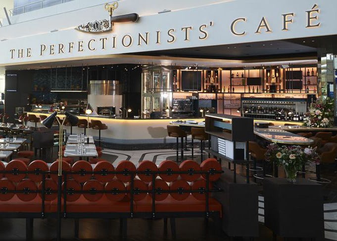 Het restaurant maakt deel uit van een miljoenen kostende renovatie van de terminal. De gerechten op de kaart in The Perfectionists' Café zijn gebaseerd op de tv-serie In Search of Perfection, die enkele jaren geleden draaide op de BBC en waarin Blumenthal gerechten maakte.
