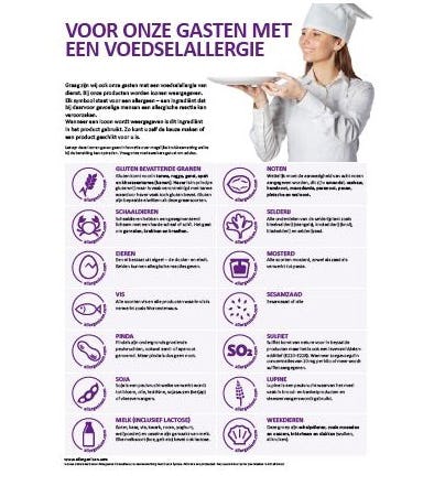 Vanaf 13 december 2014 geldt nieuwe allergenenwetgeving. De aanwezigheid van veertien allergenen moet voor onverpakte producten door de horeca aan de consument duidelijk gemaakt worden.