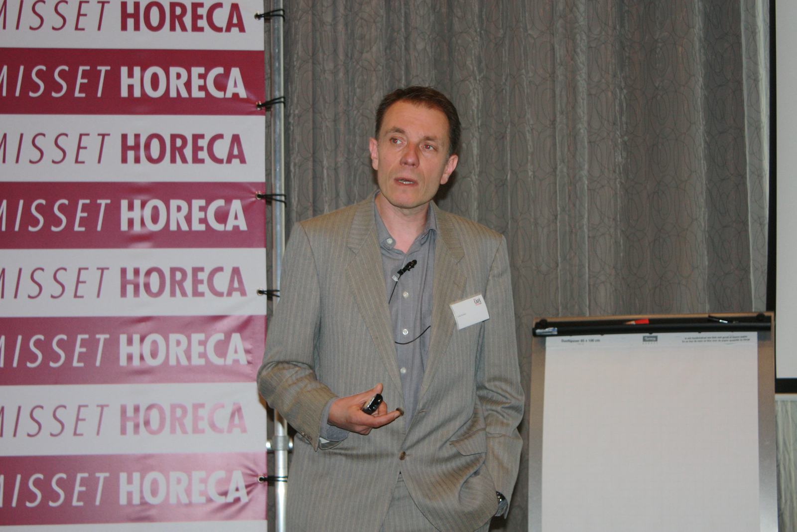 Om de teruglopende cafébezoeken tegen te gaan, kwam De Boo met een aantal tips. Te beginnen: weet wat de groeimarkten zijn. Het aantal singels neemt toe, evenals het aantal senioren. De Boo: 'Wie heeft er al ruimte in zijn zaak waar rollators kunnen staan? Er zijn tegenwoordig al rollator-ophangsystemen.' Daarnaast groeit het aantal toeristen. In de zaal bleek een klein aantal aanwezigen –deels- afhankelijk van toerisme. Dirk Breedveld van Biersommelier Breedveld op Texel: 'Italiaanse en Spaanse toeristen blijven weg, maar we kregen wel Chinezen, een unieke ervaring.' De Loo: 'Uit China komen steeds meer toeristen, het afgelopen jaar groeide hun aantal met liefst 20 procent. Ook het aantal Russische en Duitse toeristen groeit'.