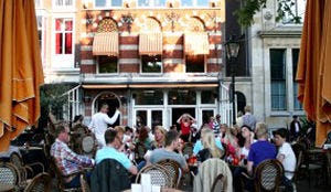 ‘We willen mensen naar ons toe trekken en activiteit op het terras hebben,’ zegt de manager van het eetcafé Mirthe van den Brink. Van een laptopverbod moet Luden Den Haag aan Het Plein dan ook niets weten.