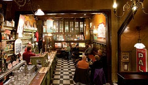 ‘Vrijwel iedereen die binnenkomt, krijgt een begroeting. De bestelling wordt snel opgenomen en aan tafel geserveerd. Dit café doet er alles aan het de gast naar de zin te maken. Iedereen achter de bar is kundig, weet iets te vertellen over de dranken en neemt tijd voor een praatje. Dit bedrijf klopt tot in de puntjes.’